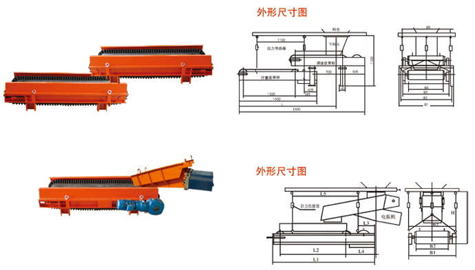 吊掛皮帶秤由三支高精度拉力傳感器垂直吊掛作為計(jì)量機(jī)構(gòu),喂料可采用電振機(jī)或給料皮帶秤。